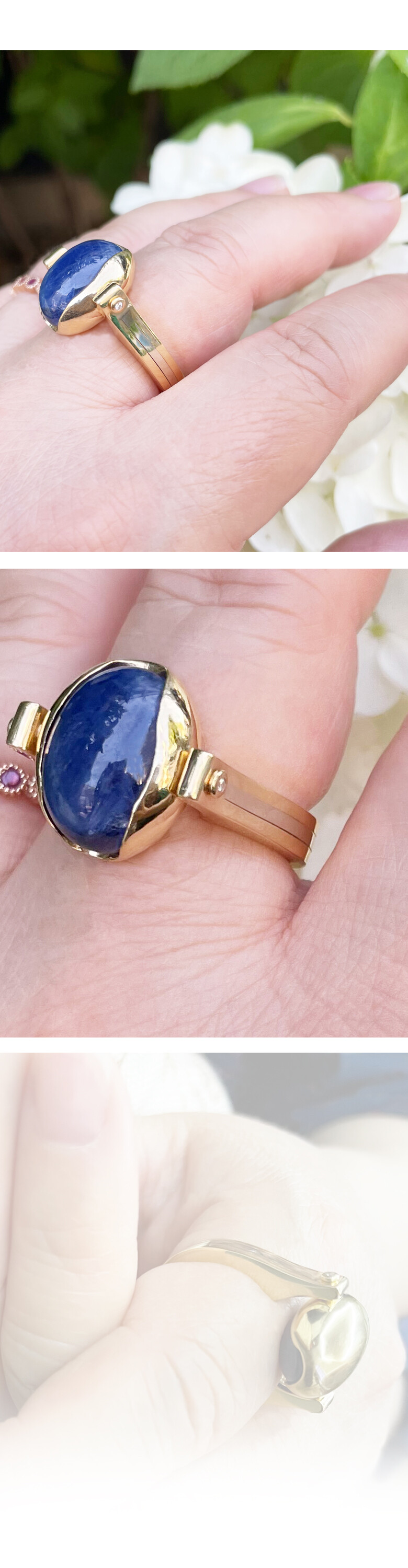 동행 블루 사파이어 양면 회전 반지 _U(Universe, 유니버스) MYCROWN® BLUE SAPPHIRE ACCOMPANY REVERSIBLE RING _ U _ 18k gold _ Natural blue sapphire gold ring _ 리버서블 링 / 내 인생의 왕관, 마이크라운 주얼리