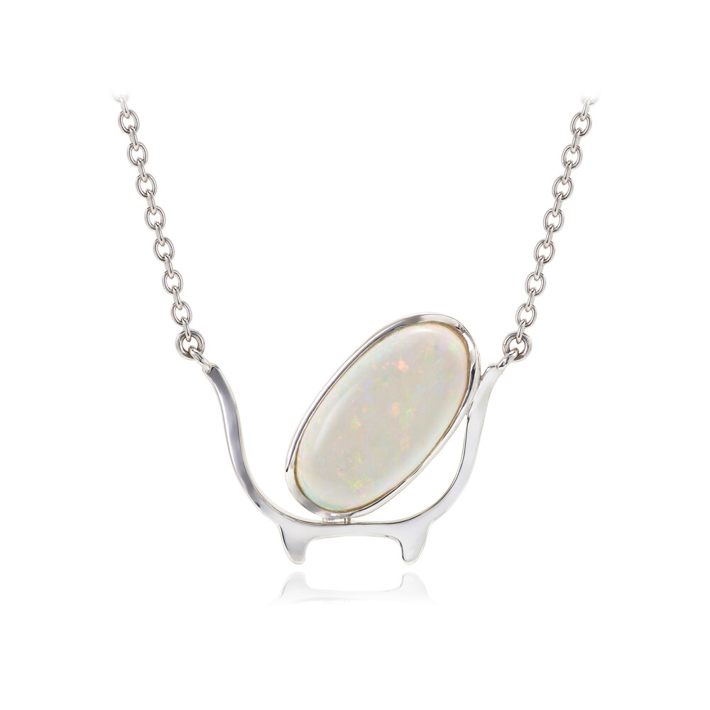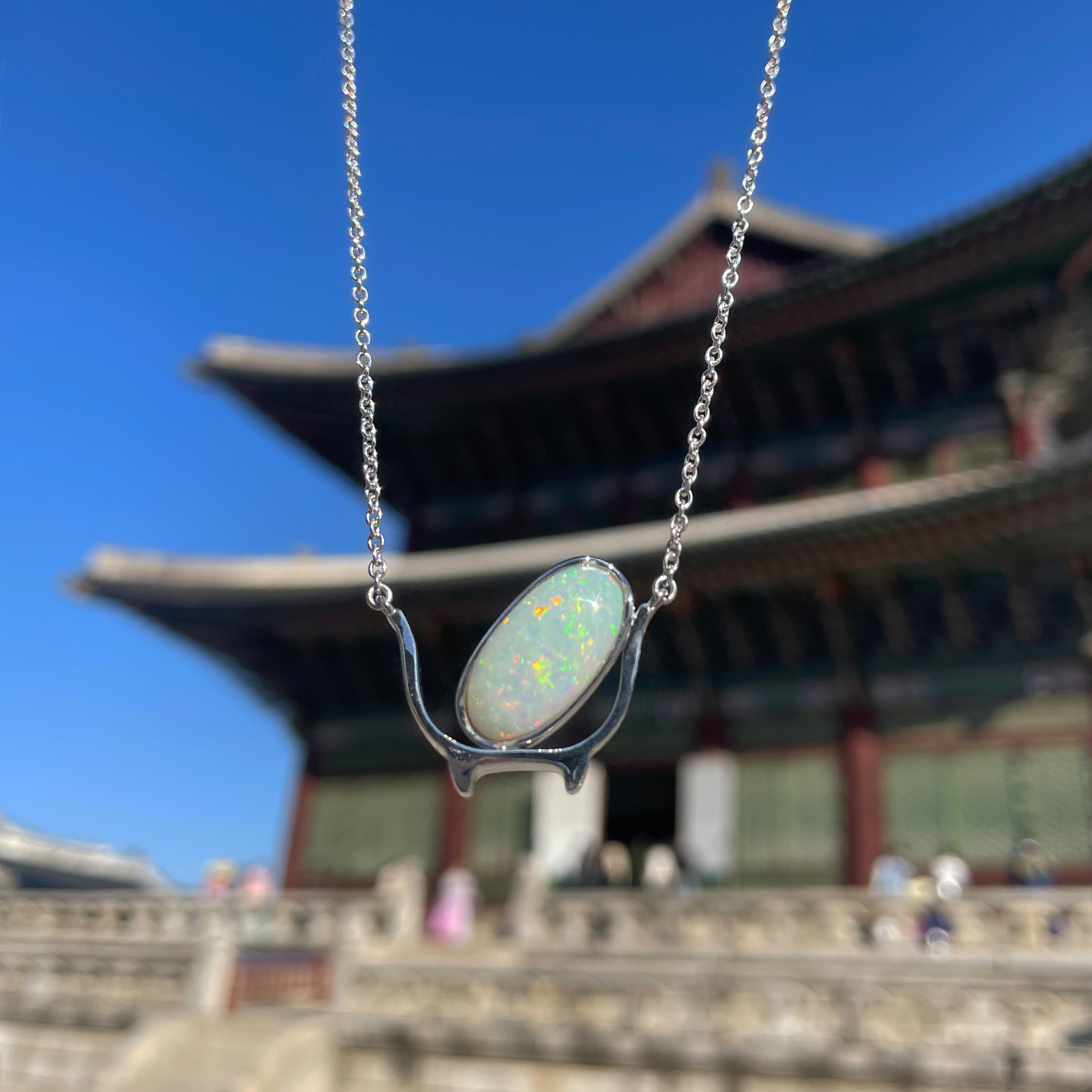 백자 찻잔 마이-젬스톤 양장 목걸이 MYCROWN® MY-GEMSTONE BAEKJA NECKLACE _ 18k gold _ chain CABLE A 7 _ Natural Opal 오팔 / 내 인생의 왕관, 마이크라운 주얼리