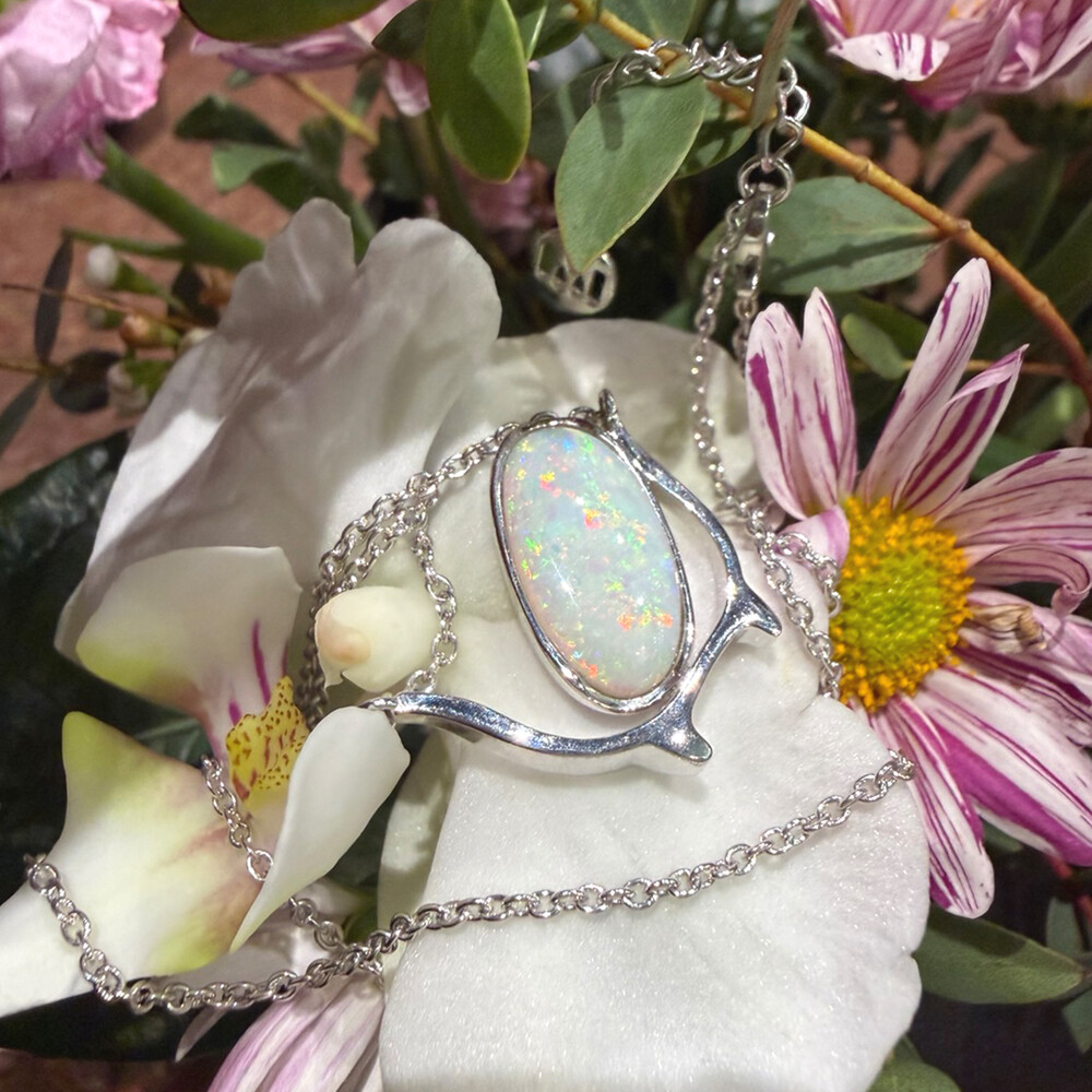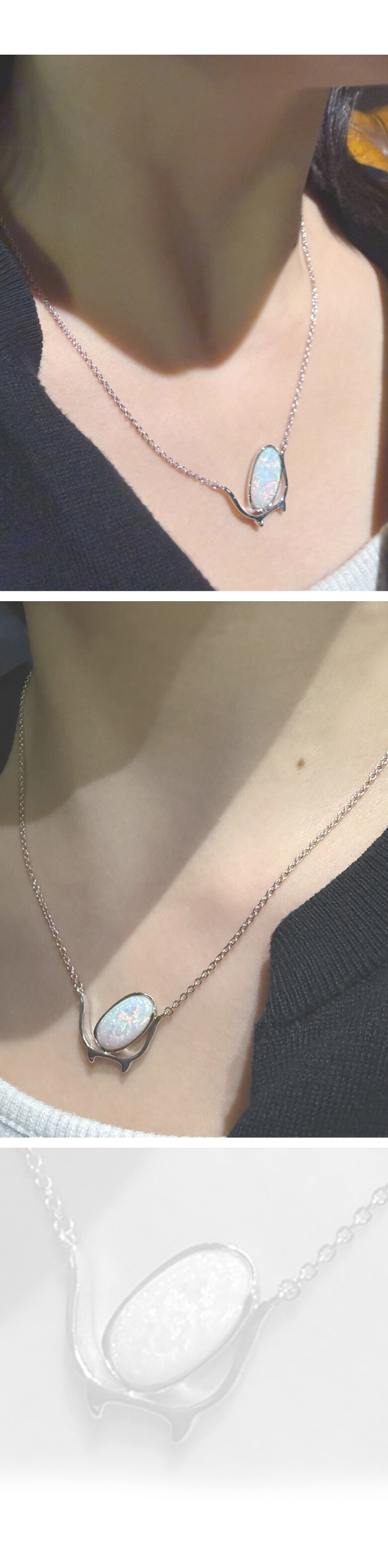백자 찻잔 마이-젬스톤 양장 목걸이 MYCROWN® BAEKJA MY-GEMSTONE NECKLACE _ 18k gold _ chain CABLE A 7 _ Natural Opal 오팔 / 내 인생의 왕관, 마이크라운 주얼리