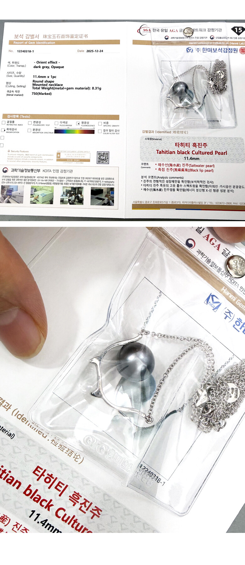 백자 진주 양장 목걸이 MYCROWN® MY-PEARL BAEKJA NECKLACE _ 18k gold _ chain CABLE A 7 _ 11.5 (±0.5)mm Black Tahitian Sea Pearl 타히티 흑진주 / 내 인생의 왕관, 마이크라운 주얼리
