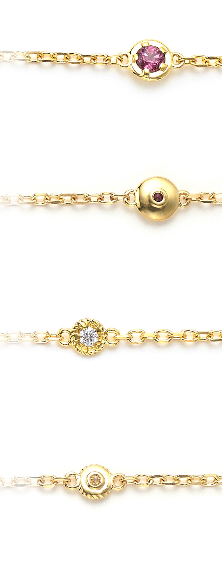 노트 (음표) 로돌라이트 가넷 다이아몬드 1-라인 팔찌 MYCROWN® NOTE BRACELET _ One line _ 18k Gold / 내 인생의 왕관, 마이크라운 주얼리