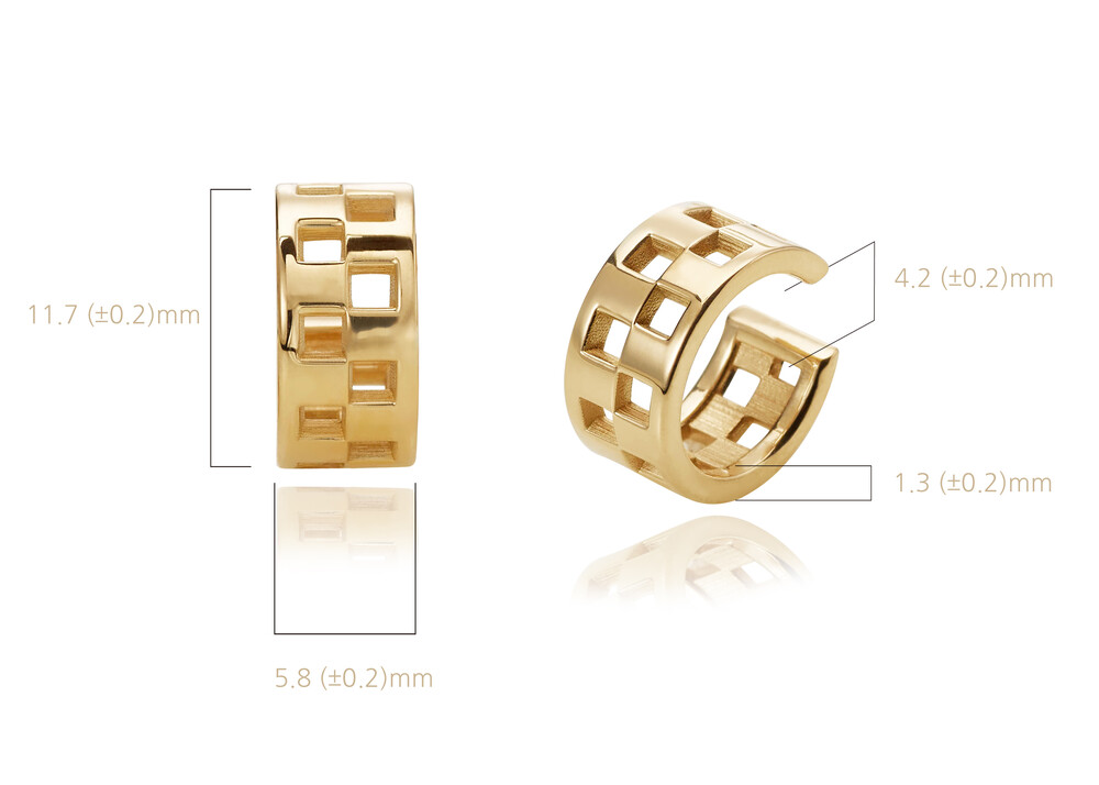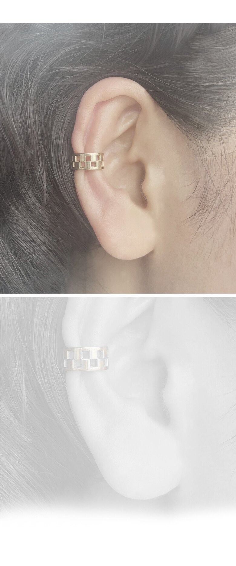 카페트 이어 커프 (with 주포켓) _ 싱글 사이즈 체커보드 패턴 조각 MYCROWN® CARPET EARCUFFS _ pattern2 _ checkerboard check _ 체크 _ 약 12mm 지름 _ 5.8mm 넓은 폭 _ 18k gold _ 1ps 한쪽 _ 굵은 반지 스페셜 에디션 주문 가능 _ RING / 내 인생의 왕관, 마이크라운 주얼리