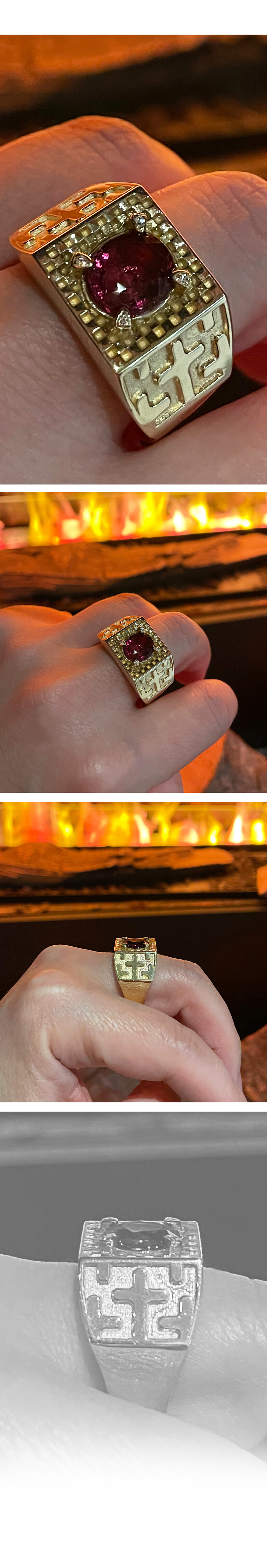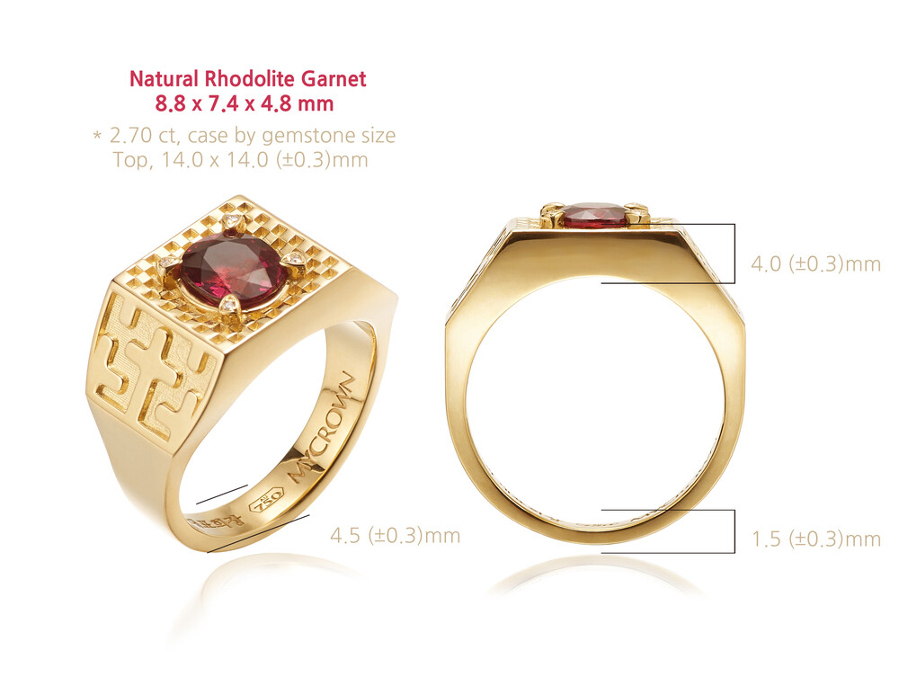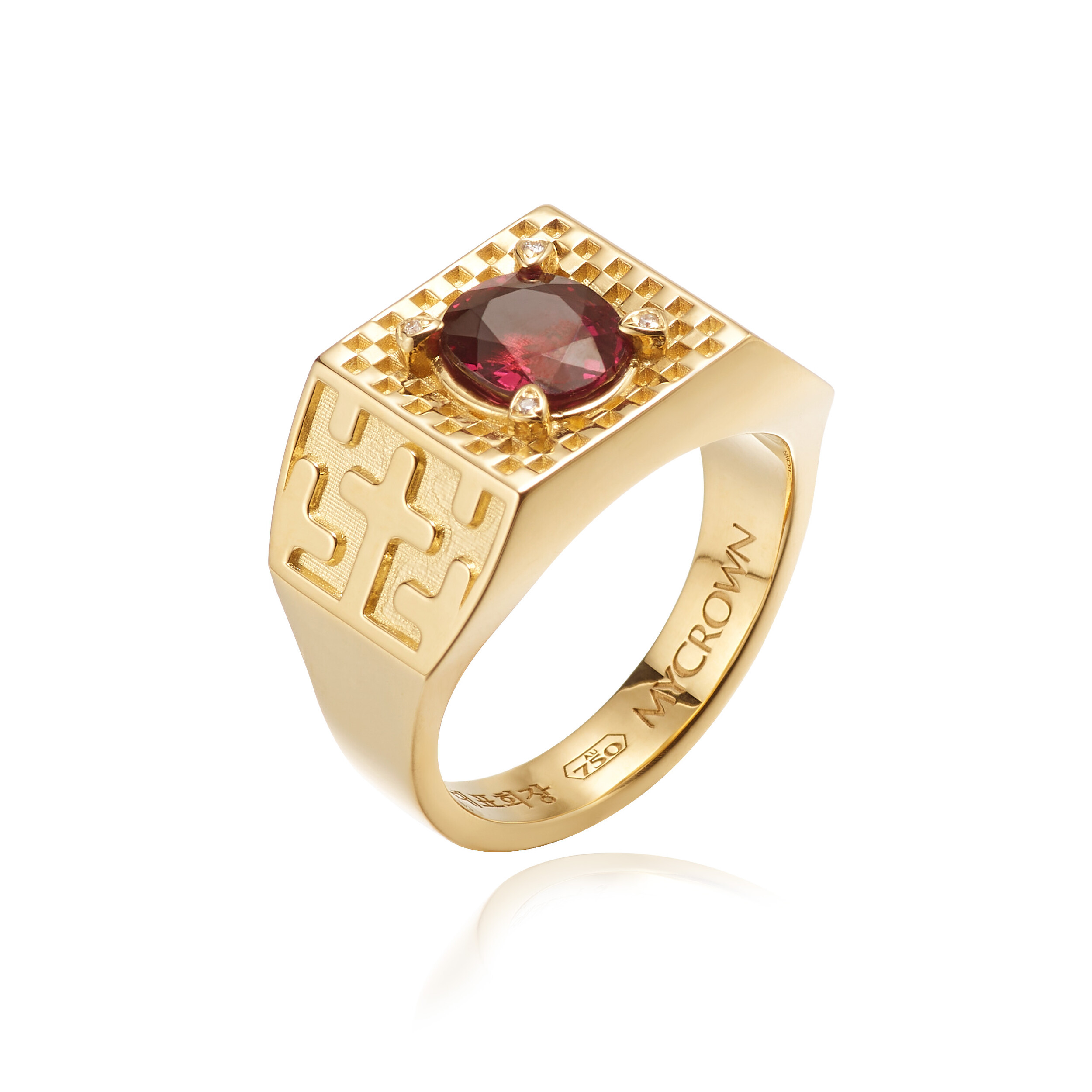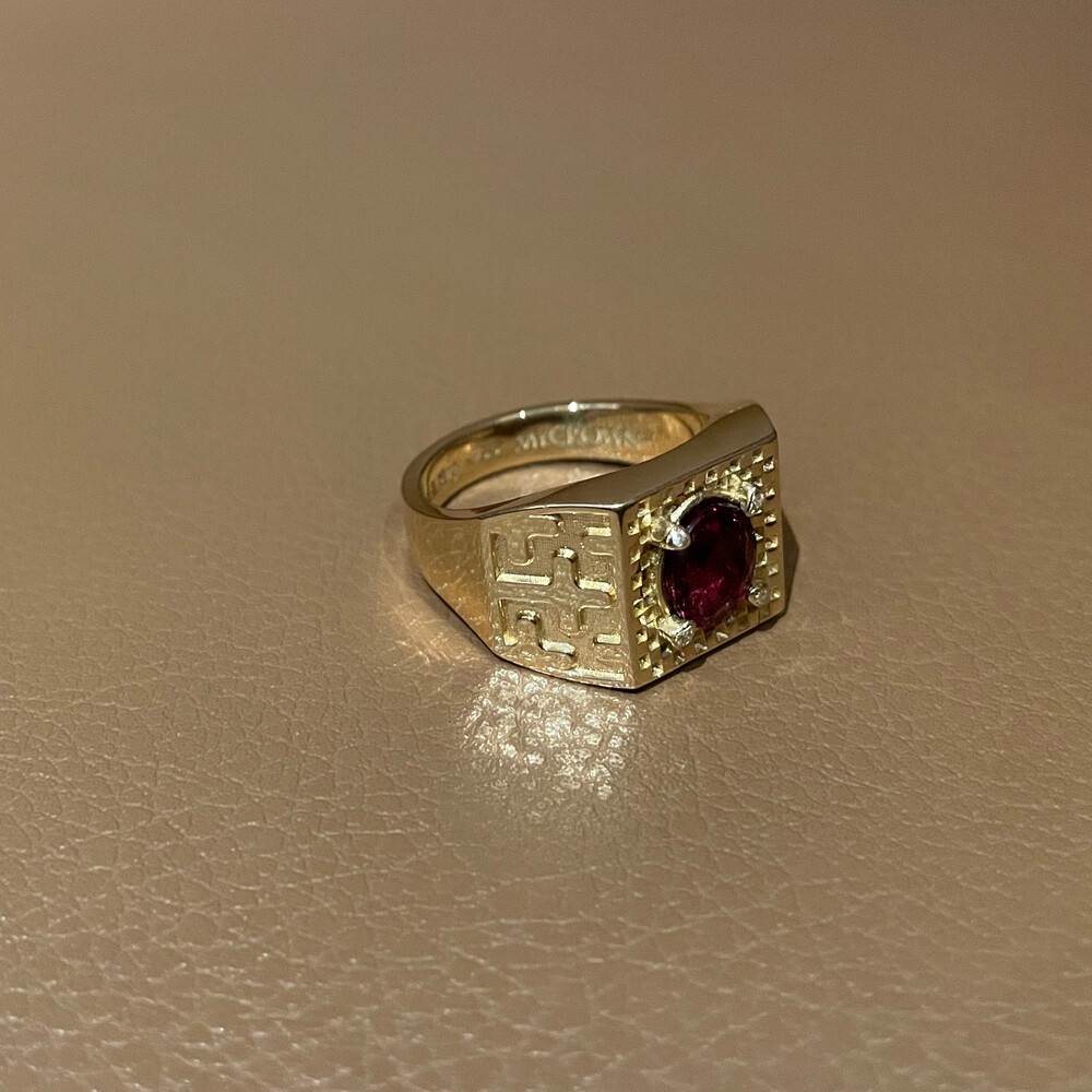 가넷 카페트 프로텍트 인장 반지 MYCROWN® GARNET CARPET PROTECT RING_ 18k gold _ pattern2 _ checkerboard check _ Natural Rhodolite Garnet 로돌라이트 가넷 _ THE CROSS 십자가 / 내 인생의 왕관, 마이크라운 주얼리