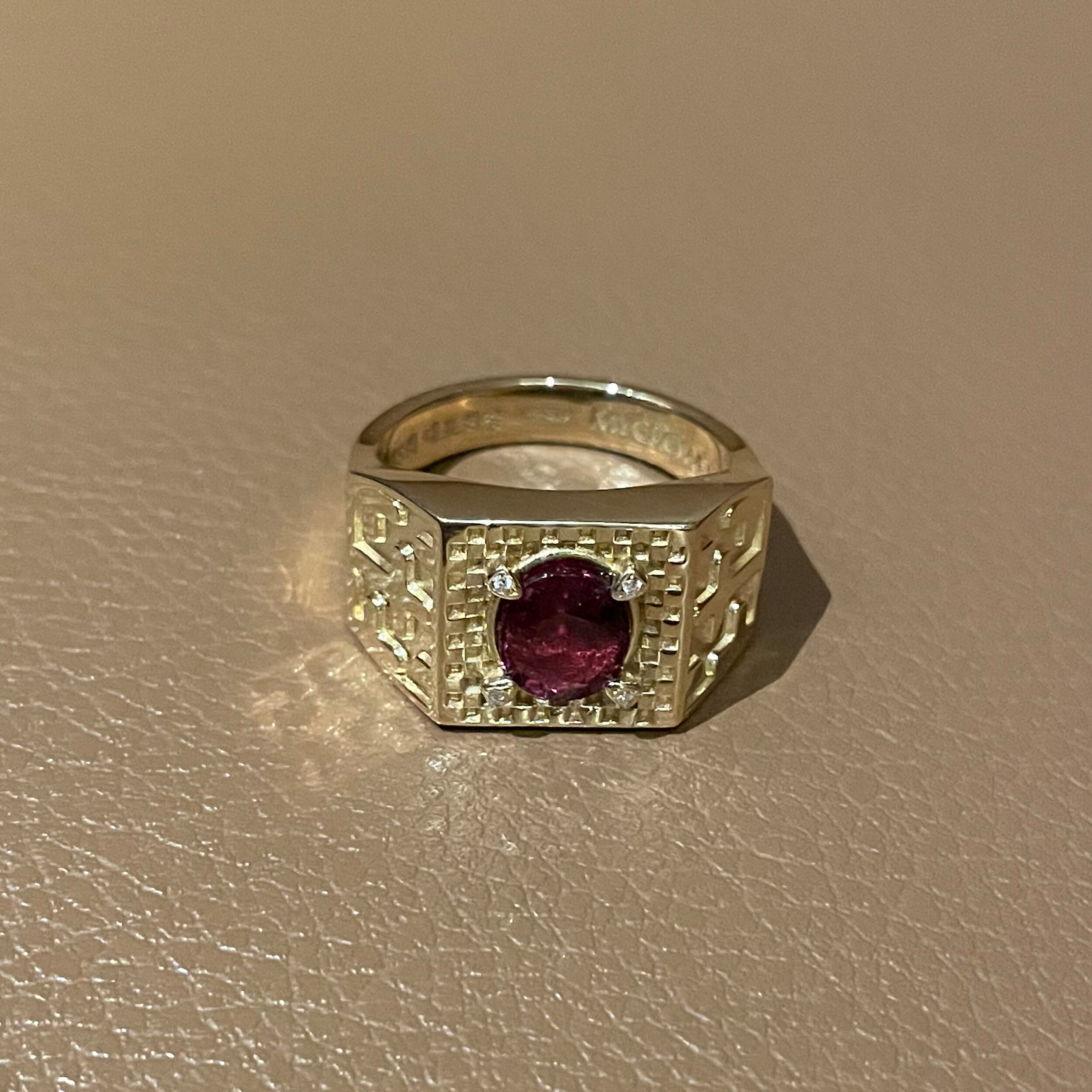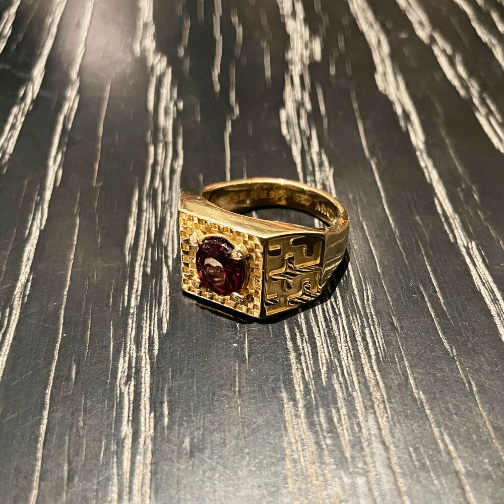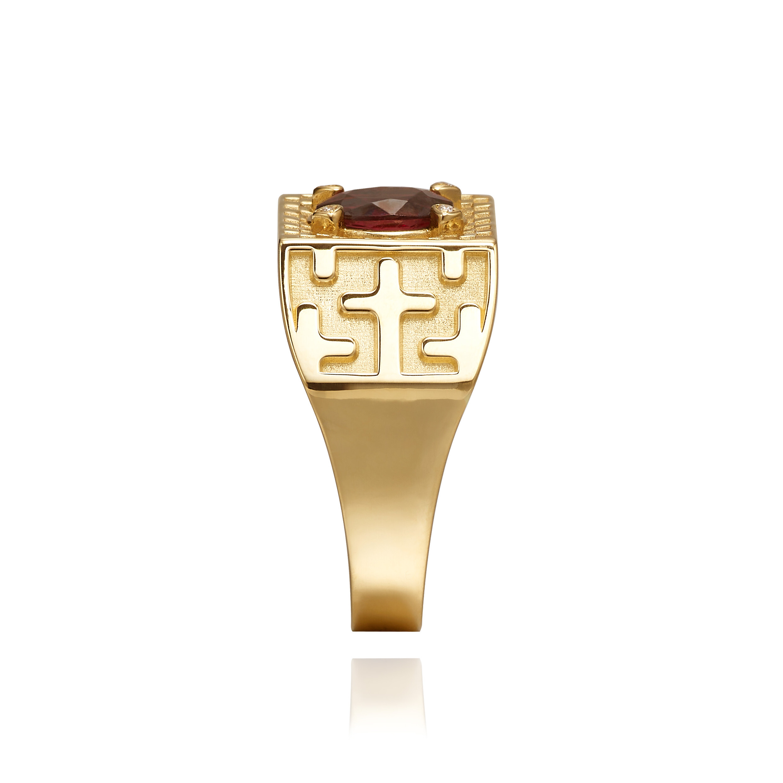 가넷 카페트 프로텍트 인장 반지 MYCROWN® GARNET CARPET PROTECT RING_ 18k gold _ pattern2 _ checkerboard check _ Natural Rhodolite Garnet 로돌라이트 가넷 _ THE CROSS 십자가 / 내 인생의 왕관, 마이크라운 주얼리