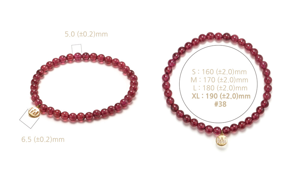 로고 참 팔찌 MYCROWN® LOGO CHARM BRACELET _ 18k Yellow gold _ same size ball _ 5.0 ~ 5.5mm Rhodolite garnet gemstone bracelet / 내 인생의 왕관, 마이크라운 주얼리