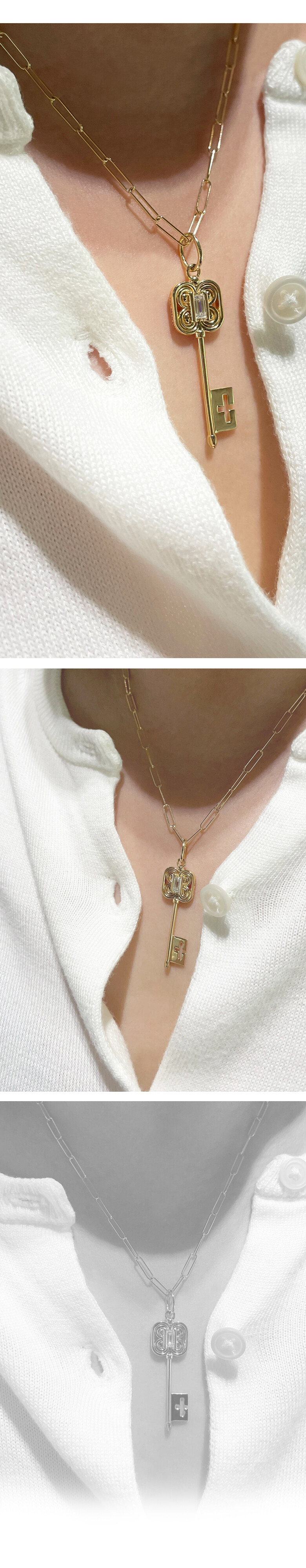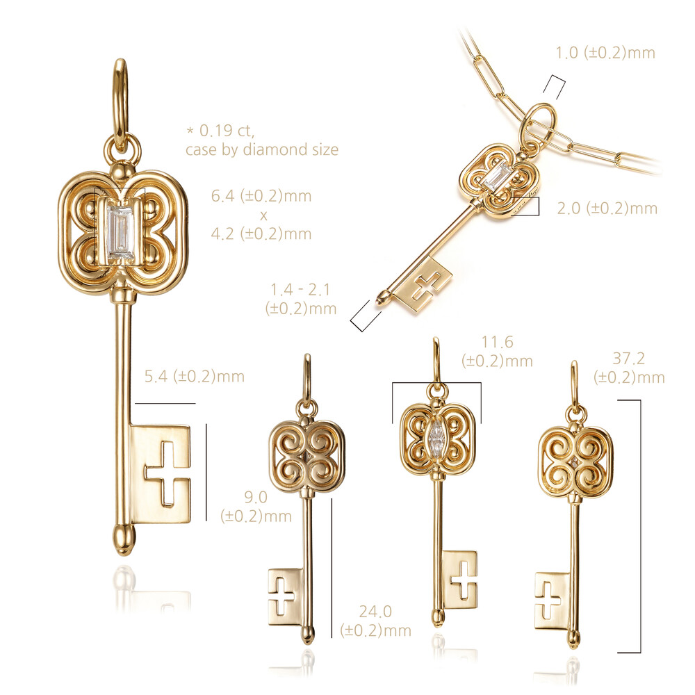 킹덤키 바게트 다이아몬드 목걸이 펜던트 MYCROWN® KINGDOM KEY PENDANT _ 18k Gold _ Baguette cut natural diamond 0.1ct / 내 인생의 왕관, 마이크라운 주얼리