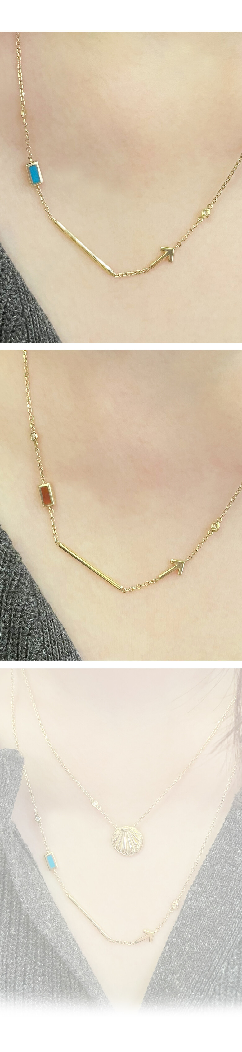부엔카미노 옐로우 화살표 목걸이 MYCROWN® BUEN CAMINO YELLOW ARROW NECKLACE _ CABLE A5 _ 18k gold _ long chain _ 1.6mm diamonds _ natural turquoise _ natural red coral / 내 인생의 왕관, 마이크라운 주얼리