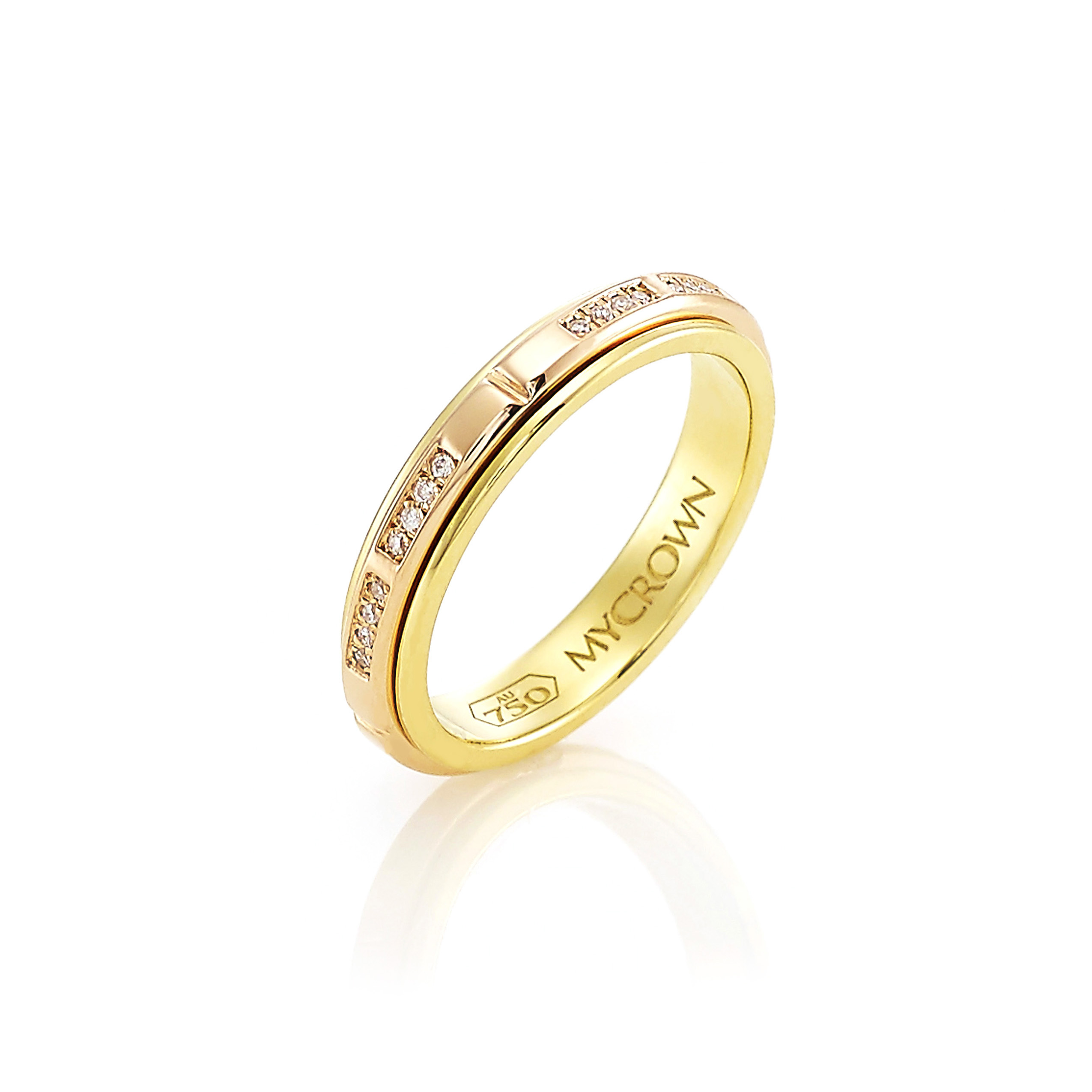 저스티스 반지 MYCROWN® JUSTICE RING _ 18k Gold _ 1.0mm diamonds _ Two tone & Rotating gold bands / 내 인생의 왕관, 마이크라운 주얼리