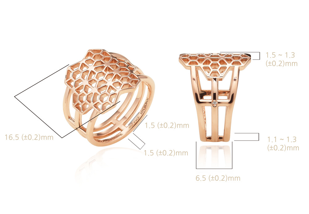 타일 육각 패턴 반지 MYCROWN® TILES RING _ hexagon pattern _ 18k gold _ 0.9mm diamonds / 내 인생의 왕관, 마이크라운 주얼리